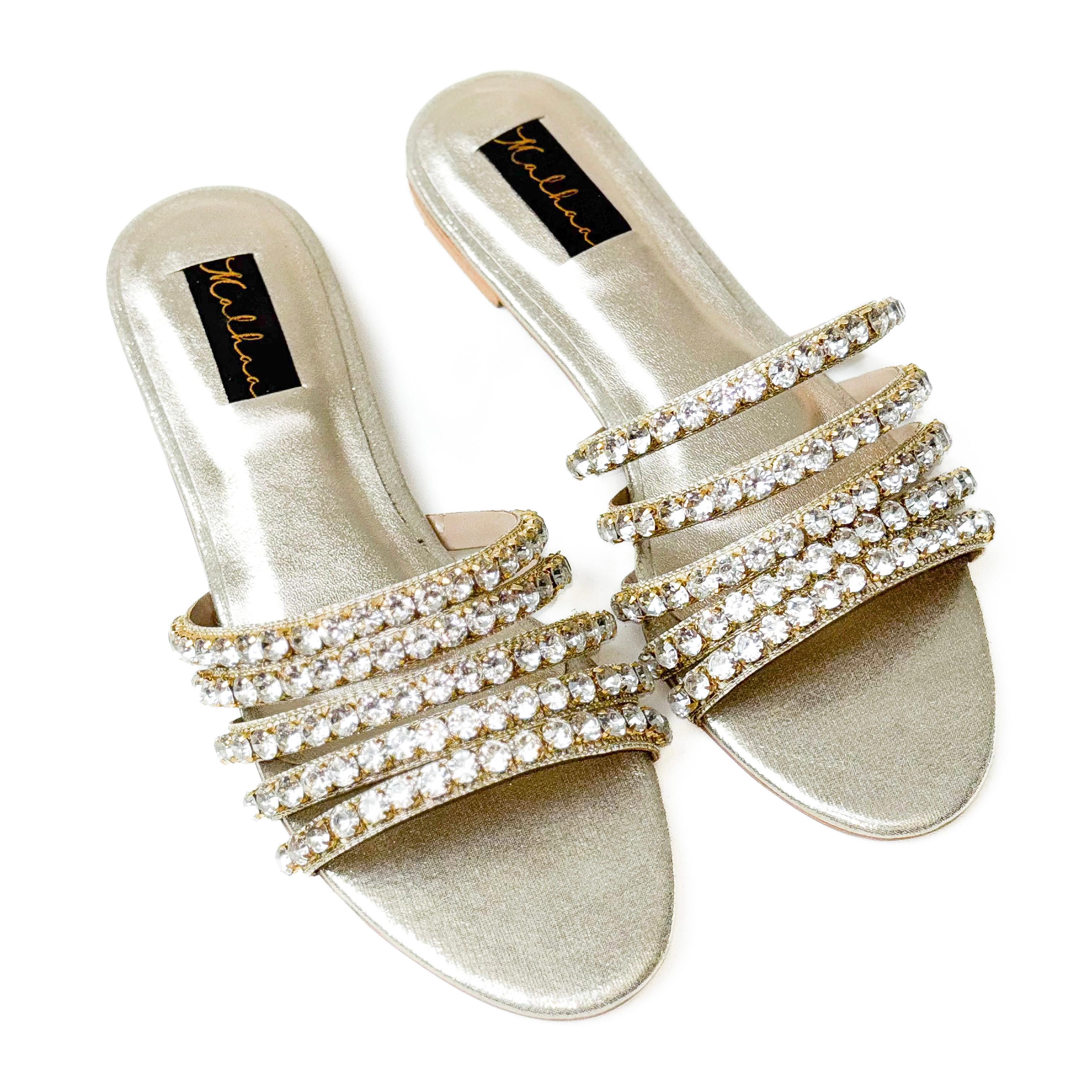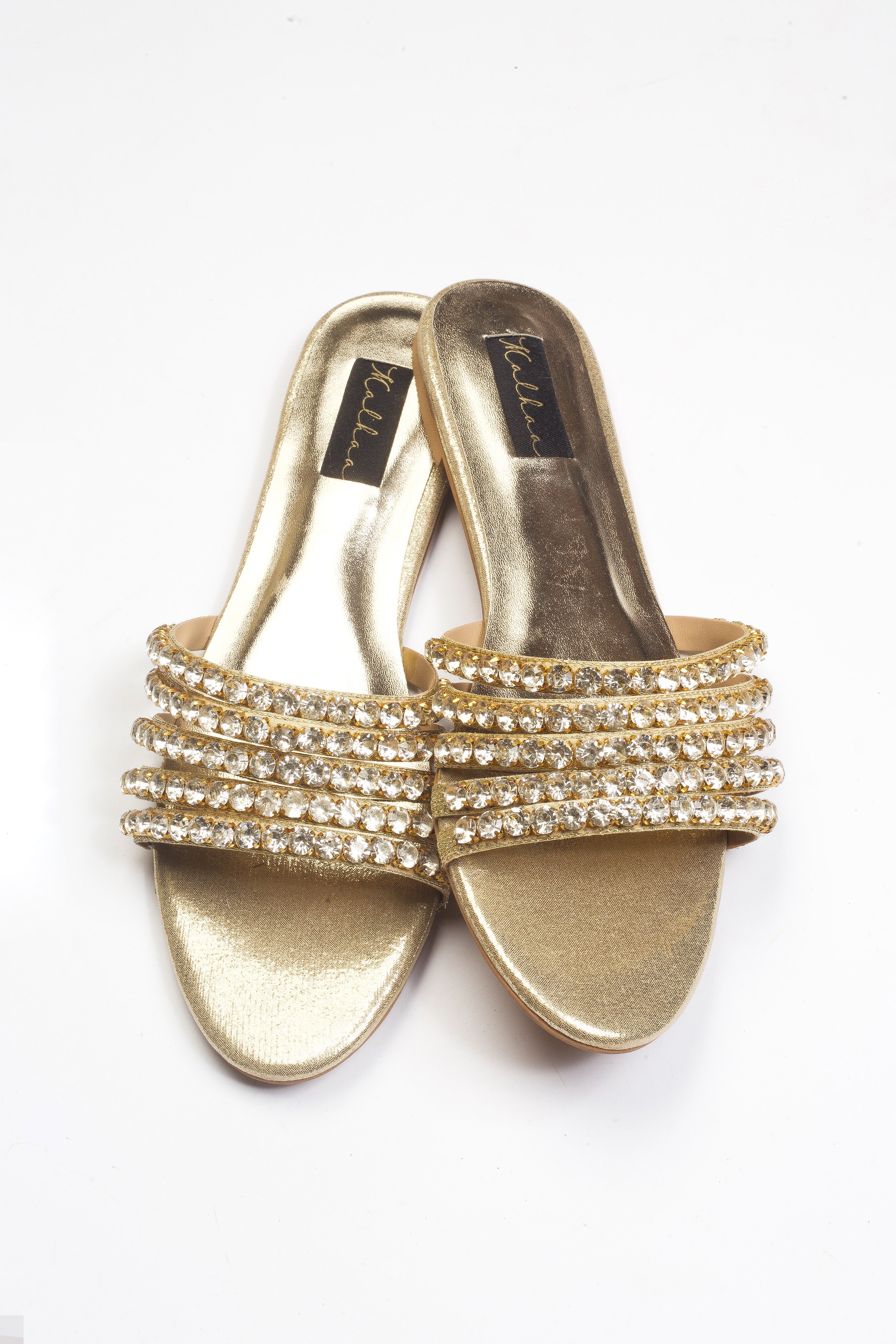 • Stripped style hand embellished flats
