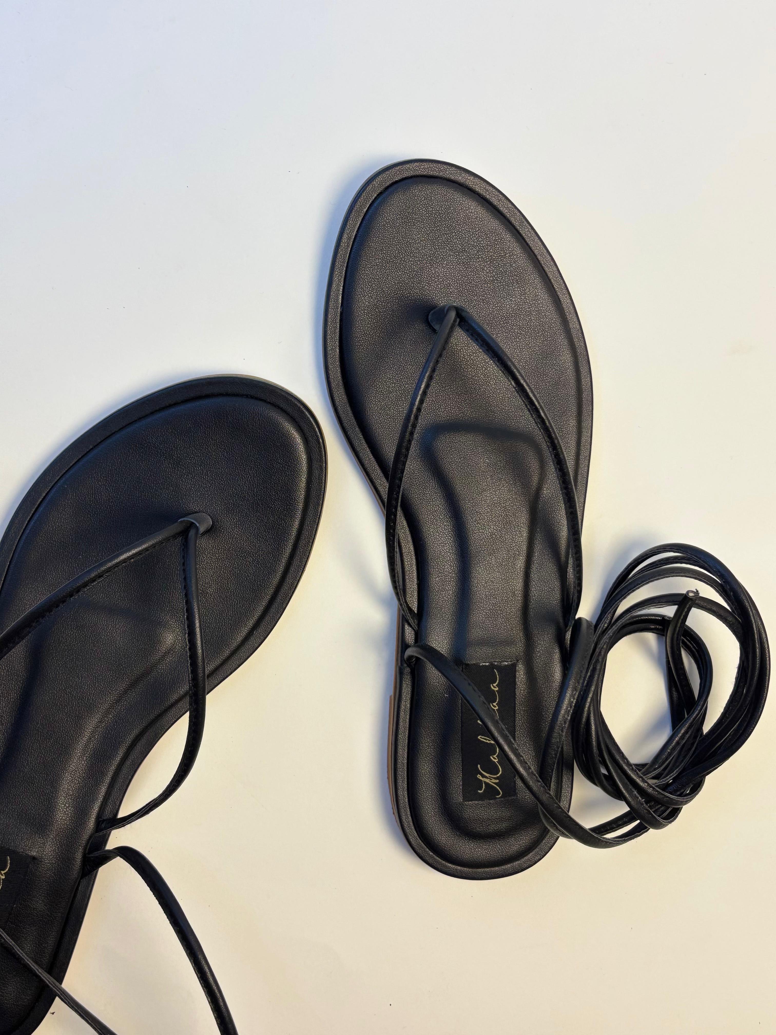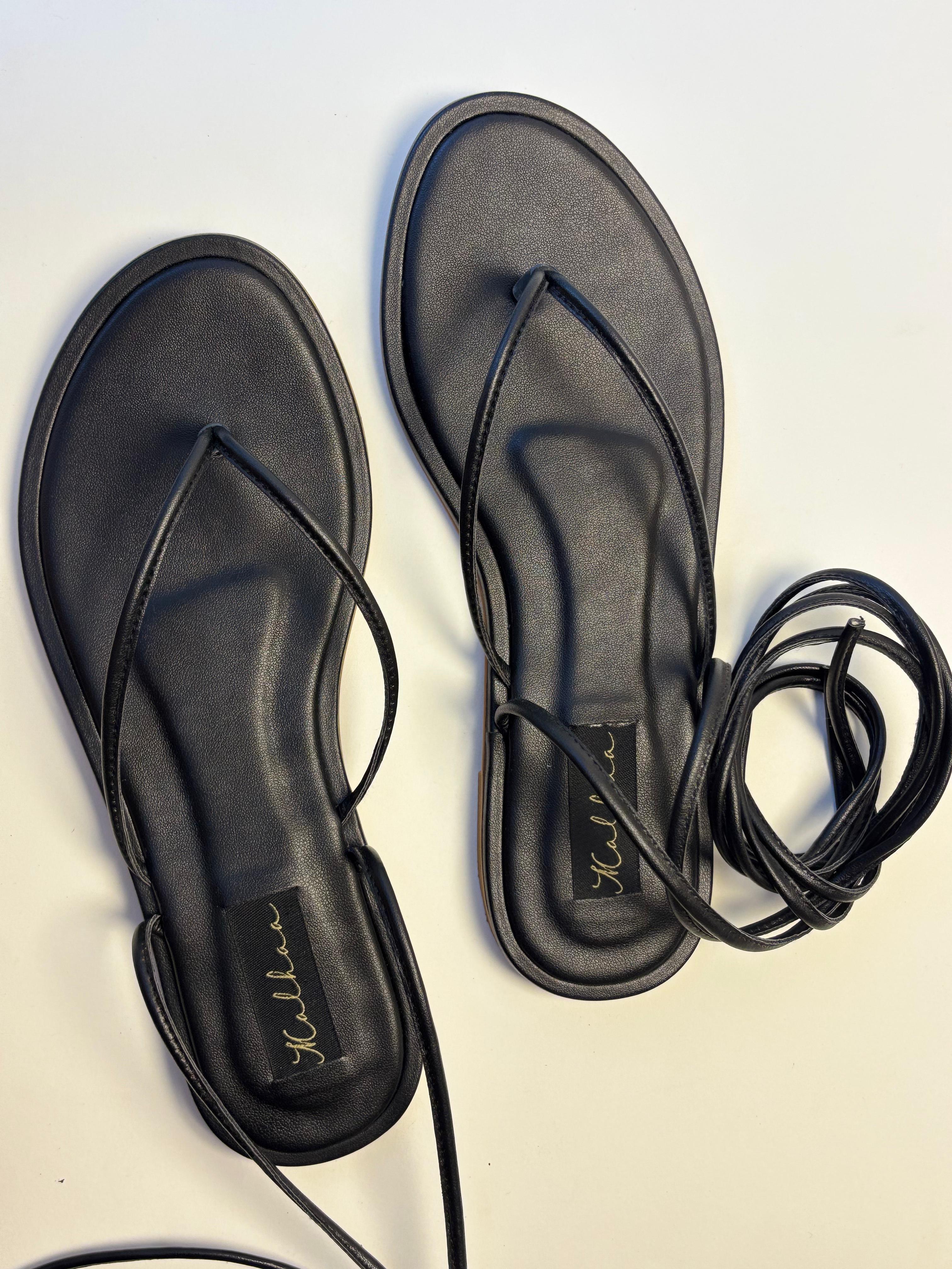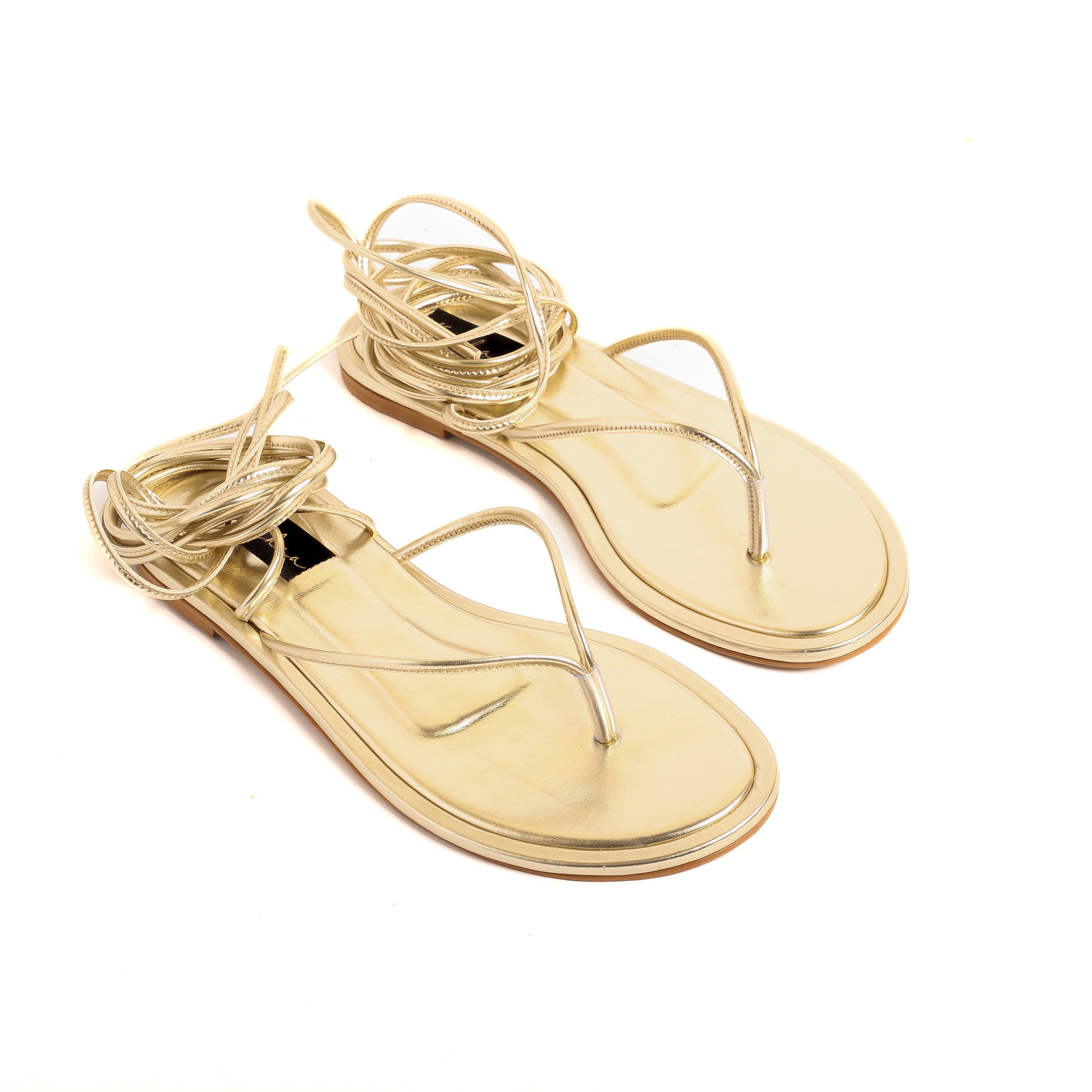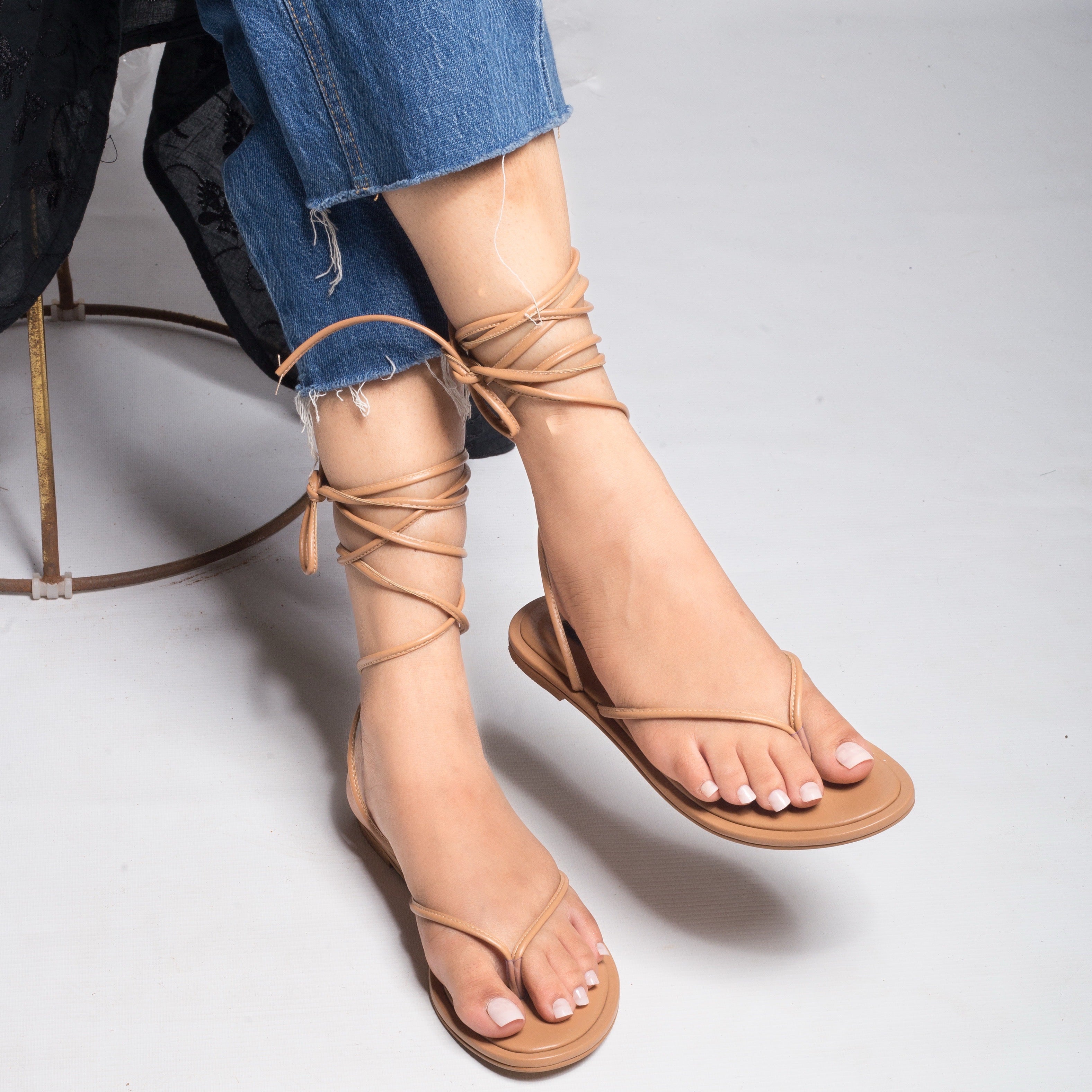 • Long strappy sandals.