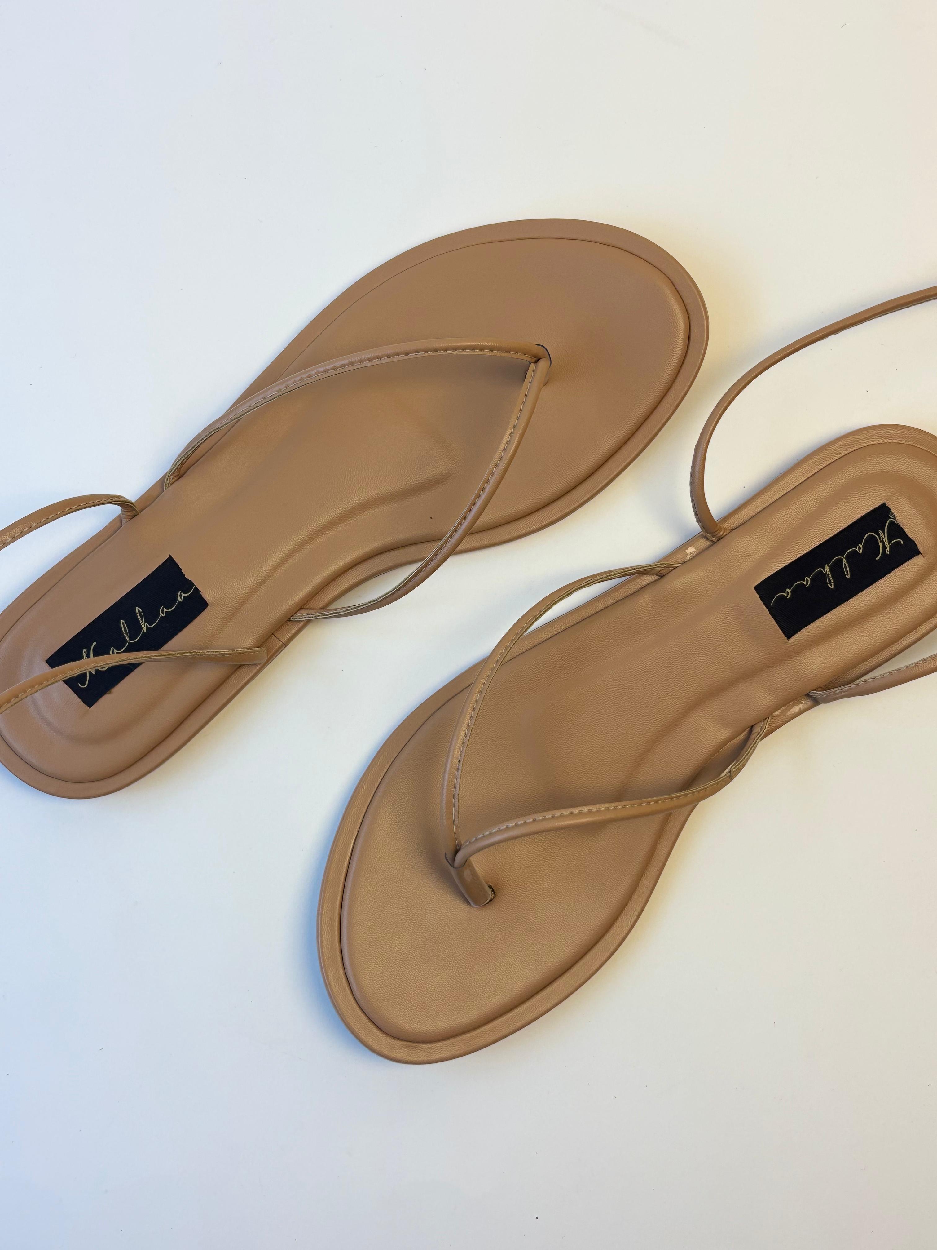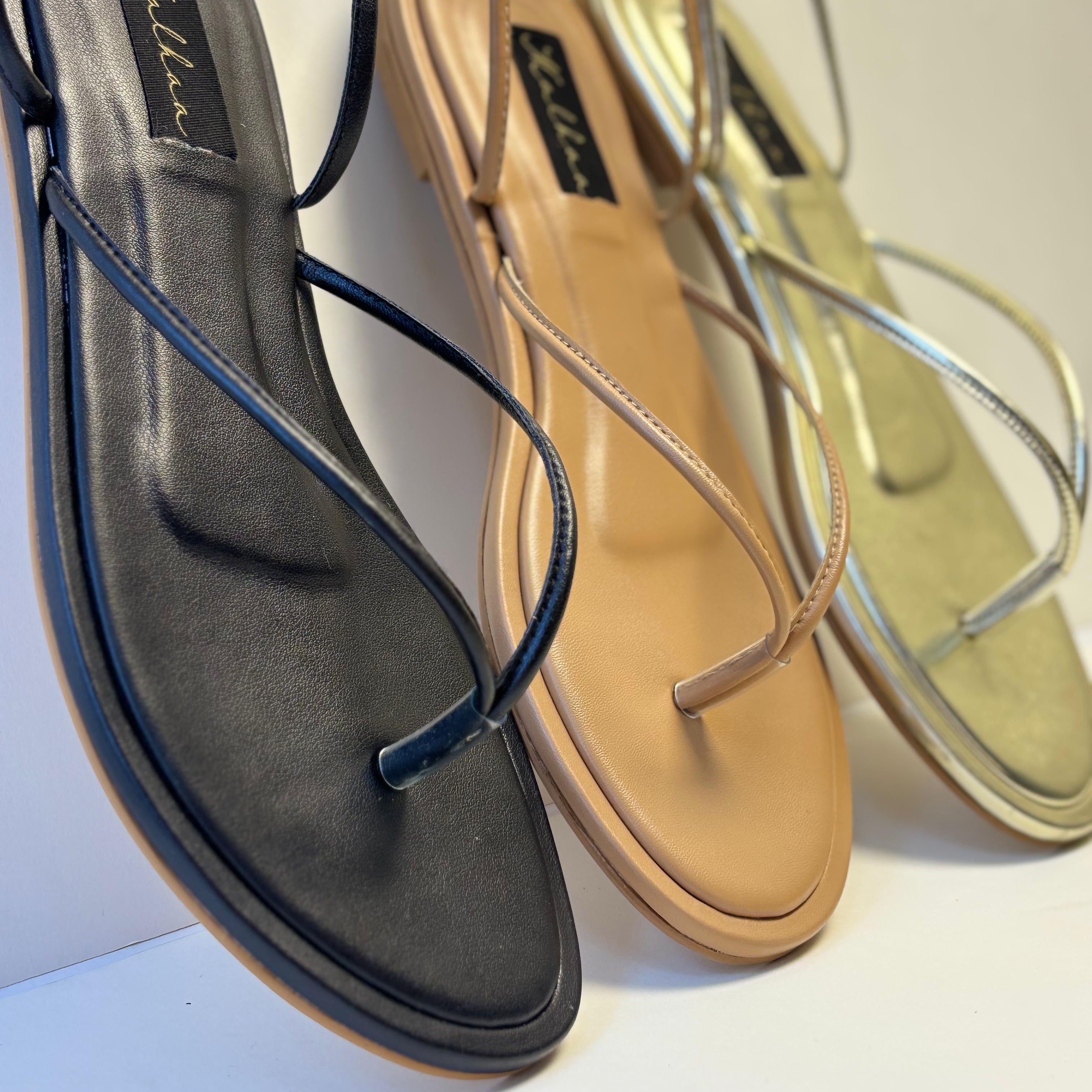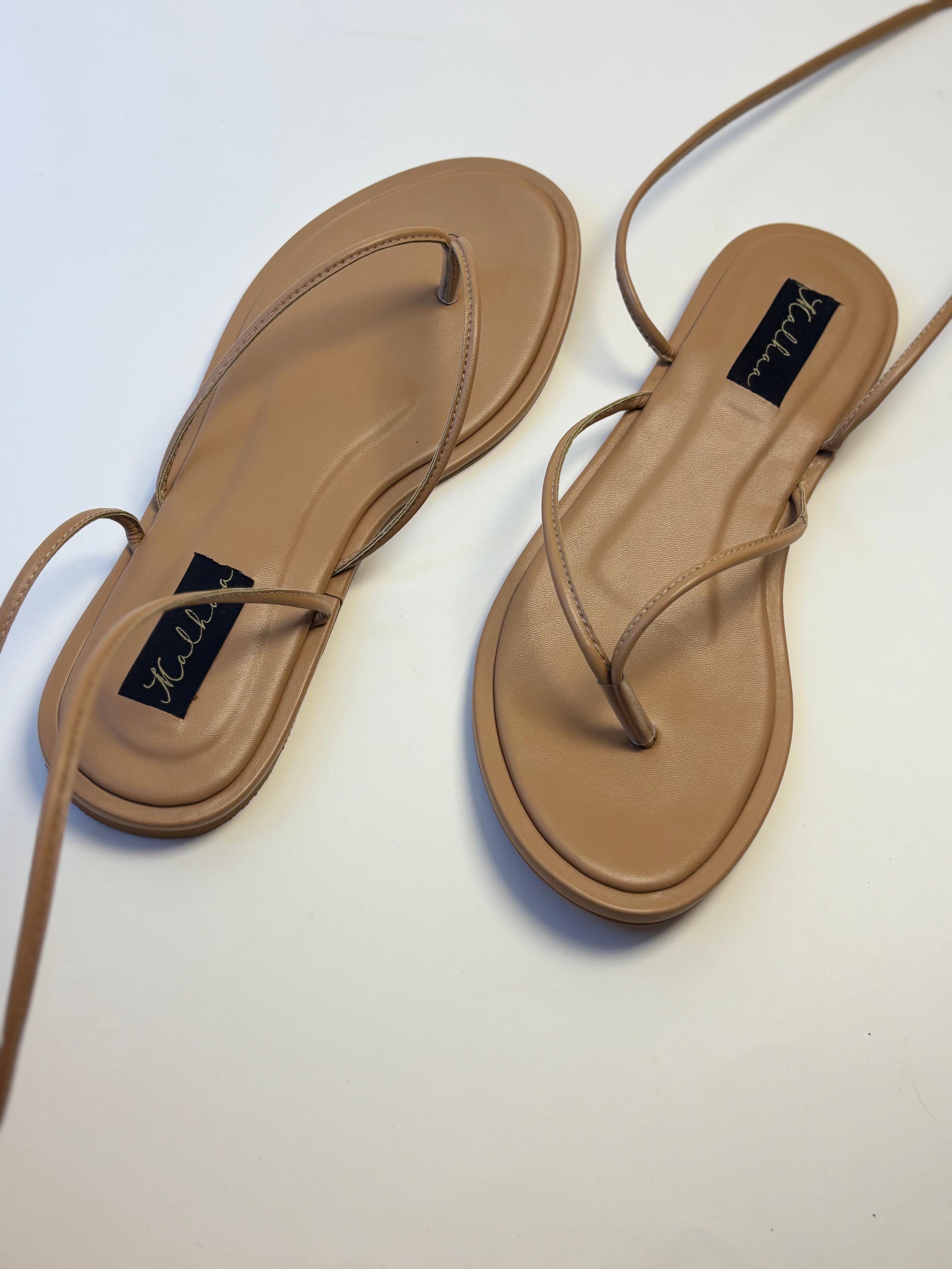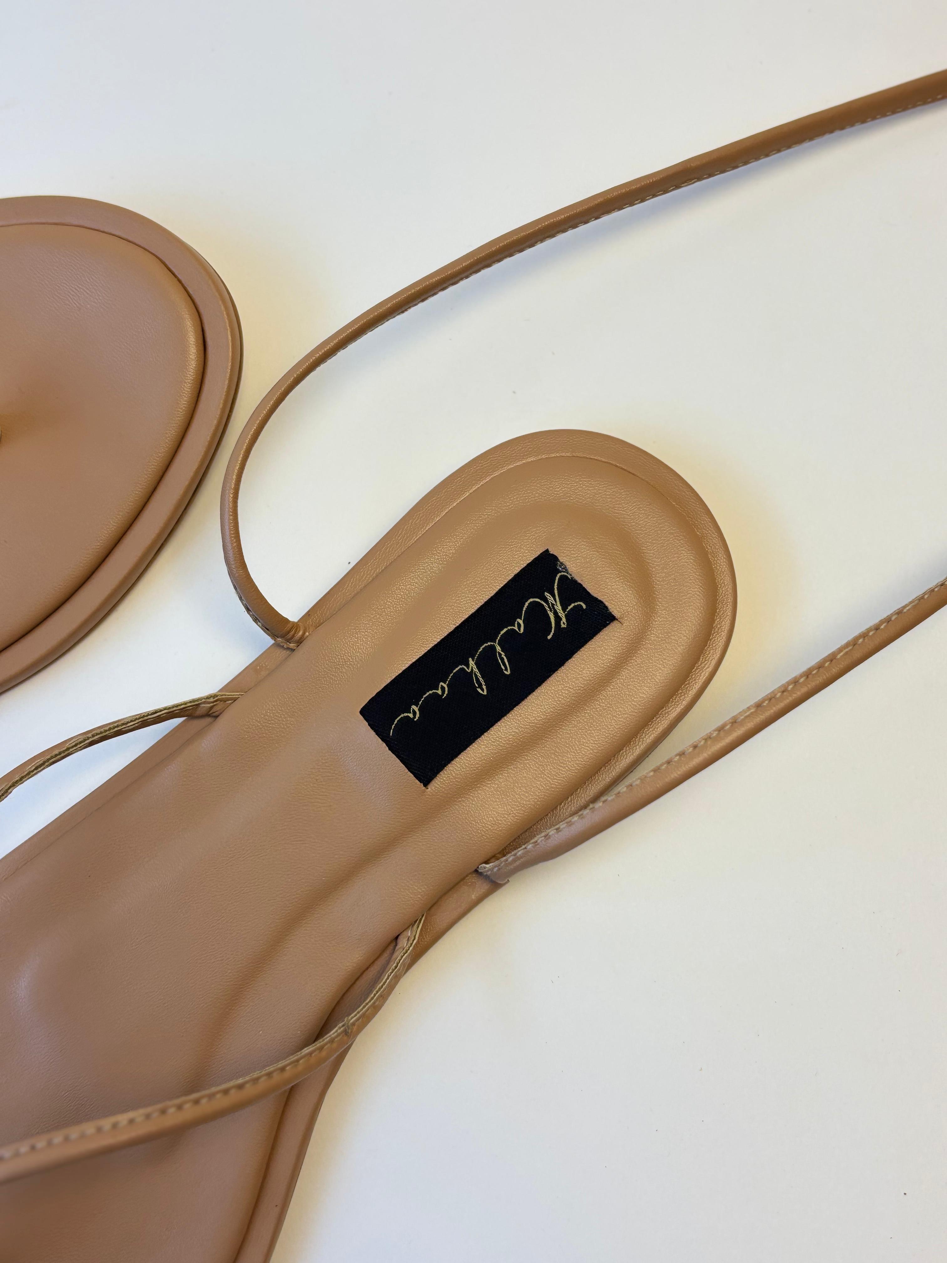 • Long strappy sandals.